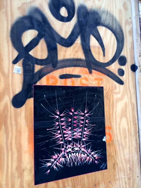 However, this is not the only life these images have had. This spring, the artist printed these designs on a thin newsprint and hung them with wheat paste around Soho. They became embedded in the urban decay at the same time their archival counterparts sat comfortably in a white-walled gallery.